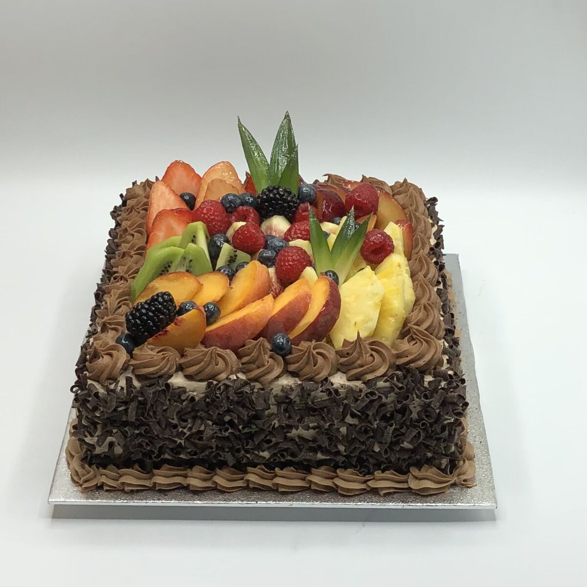 Vanilla sponge filled with cream Chantilly, decorated with exotic ...