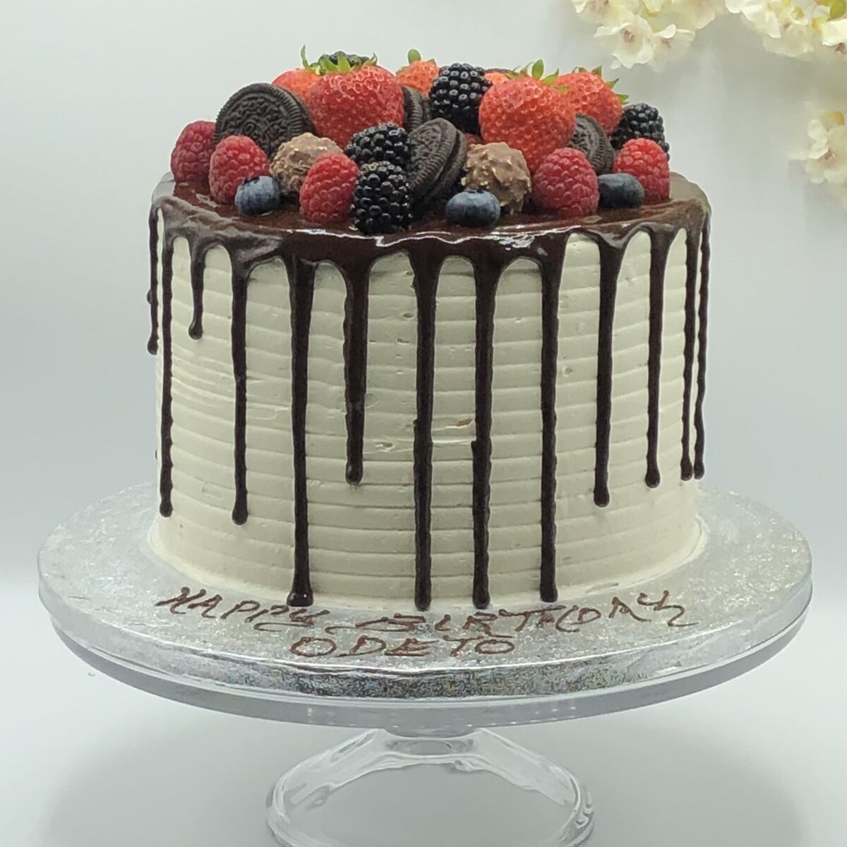 Chocolate Sponge filed and covered with Belgium Chocolate Cream and decorated ...