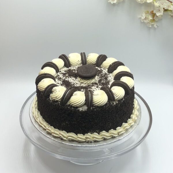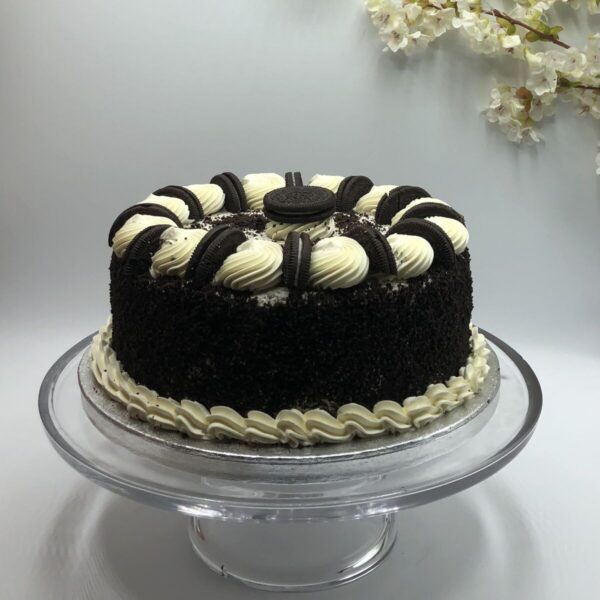 Chocolate Sponge layered and covered with Oreo Cream, finished with Grounded Oreo and Oreo Cookies.